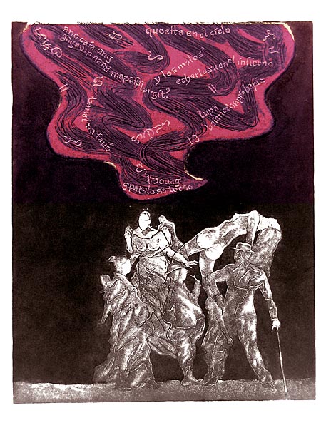 Imelda Cajipe-Endaya. Mga Anino Kahapo’y Tanaw ko pa Ngayon APIII/25. [“Yesterday’s Shadows are still on Today’s Horizon” (my rough translation)] Photoengraving, etching, and collagraphy. 35 x 28 cm . 1979. . Hiraya Gallery. Rightclicked and uploaded with express permission (thanks thanks!) from the www.hiraya.com