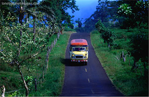 Photo by Peter Hendrie, Lonely Planet Collection. Bus on Country Road Samoa. Used here for educational, non-commercial purposes, free service by blog-use of image provided by and from www.allposters.com Lonely Planet Collection.