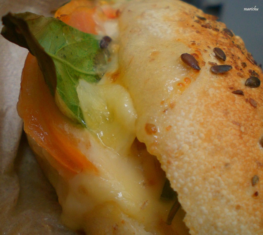 Filipinos won’t hear of a sandwich that doesn’t have meat in it — ham, “spam”, sausage, bacon, etc., all processed and full of chemicals. We might change our mind — this sandwich (panini simply means sandwich that’s been pressed by a griller) is ensconced in melting mozzarella cheese, swirling in aroma and flavor — softly full-bodied. Happy weekend!