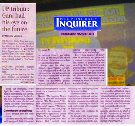 we paid tribute to Inquirer publisher Gani Yambot U.P. journ dept paid tribute to Inquirer publisher Gani Yambot Discover more from marichulambino.com Subscribe to get the latest posts sent to your email. Type your email… Subscribe click any social media icon below to share Click to share on Facebook (Opens in new window) Facebook Click to share on X (Opens in new window) X Click to share on Tumblr (Opens in new window) Tumblr Click to email a link to a friend (Opens in new window) Email Click to share on Pinterest (Opens in new window) Pinterest Click to print (Opens in new window) Print Click to share on Reddit (Opens in new window) Reddit Like Loading...