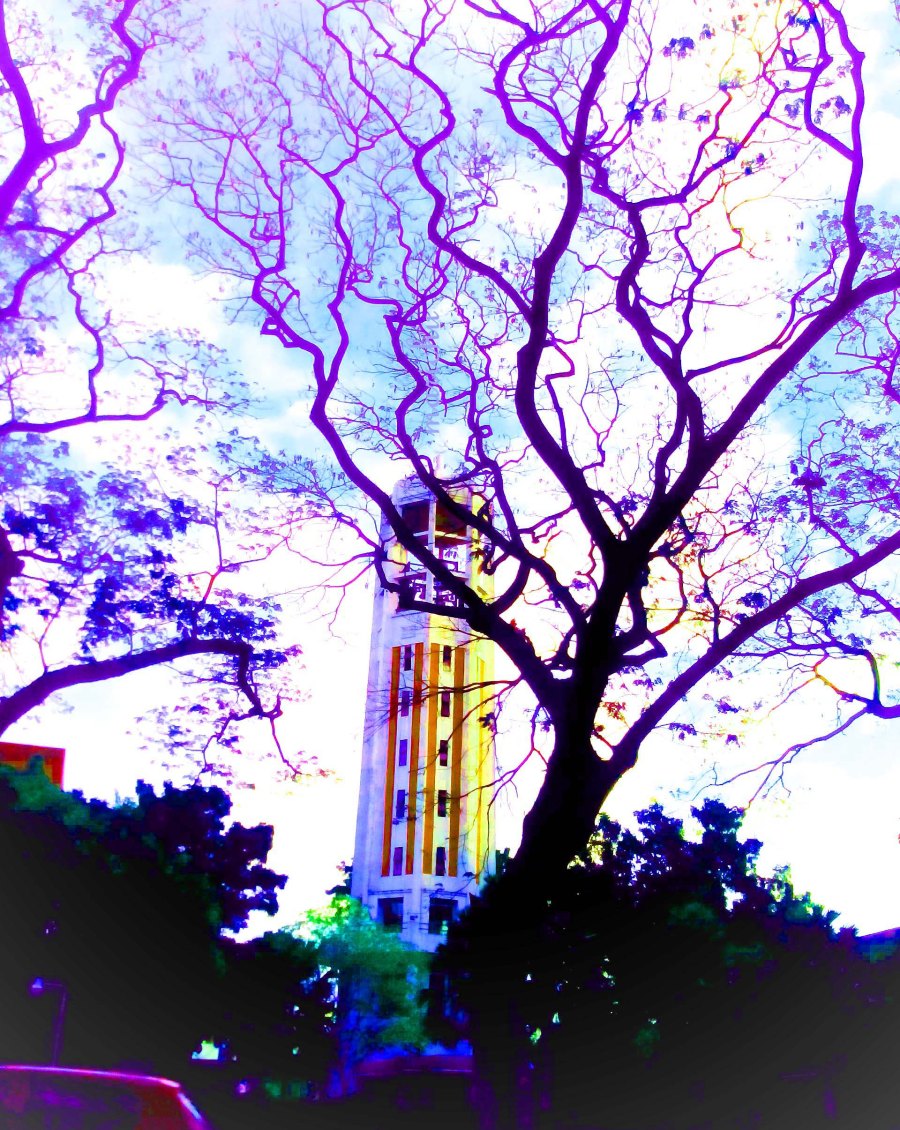 shot with an android on a blue and white morning by blog admin, of the University of the Philippines Carillon : A 136-foot tower of 46 ancient copper and bronze bells tolled sometimes as an expression of the hopes and wishes of the University community for justice and peace …