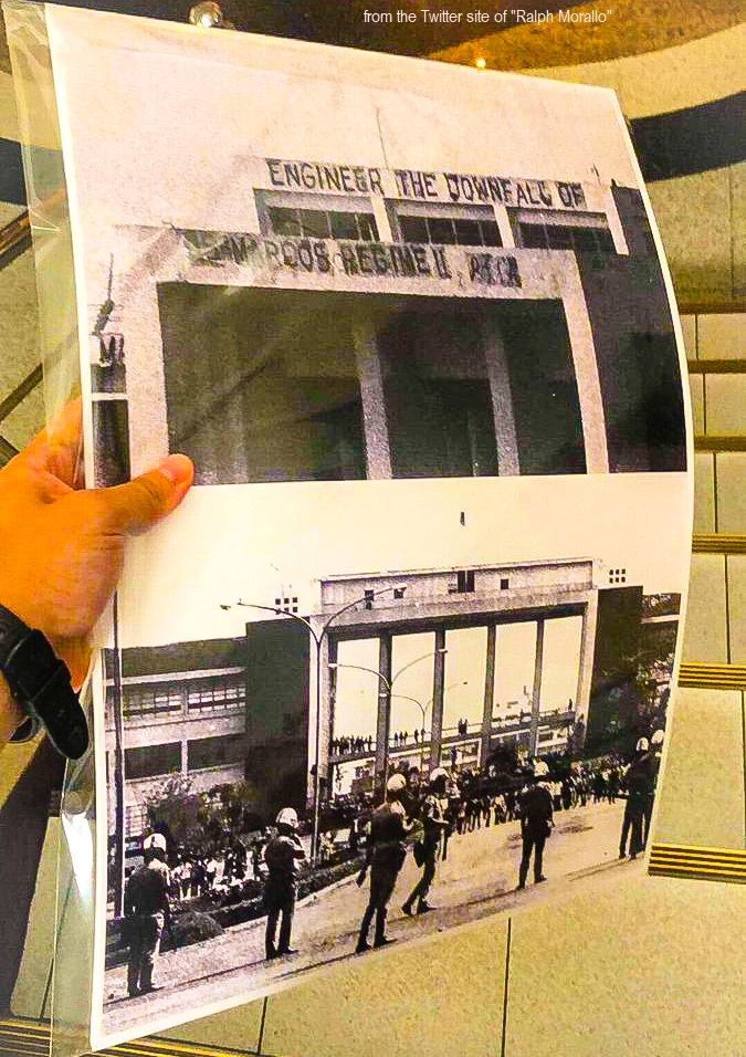Here is that photo “Engineer the Downfall…”; the slogan was painted on the facade of the U.P. College of Engineering during the First Quarter Storm, then photographed and published in the newspapers:
