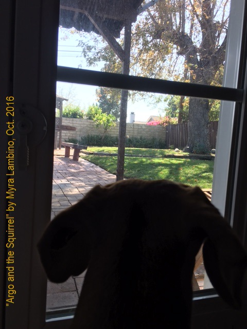 Photo by Myra Lambino, i-phone-shot, entitled “Argo and the Squirrel” … here is the original …