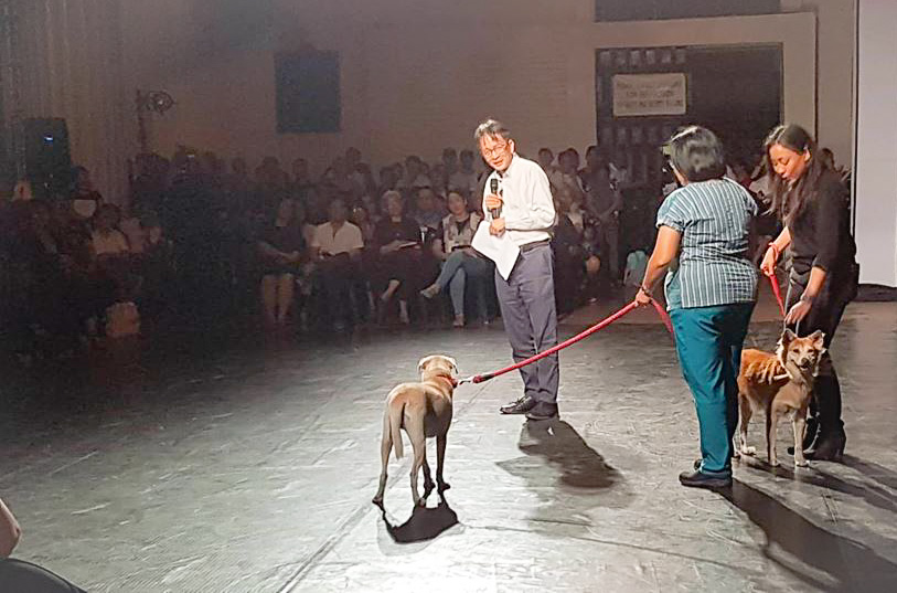 The Chancellor discussed the history of the relocation of the flagship campus of the University of the Philippines from war-ravaged Manila to the wilds of Diliman in 1948, culminating in a motorcade-march that accompanied the transfer of the original Oblation to U.P. Diliman on Feb. 11, 1949. He then proceeded to elaborate on the current initiatives of U.P. Diliman, including a “Wellness and Stress-reduction program” … on cue, Cotton walked up to the Chancellor onstage… and…