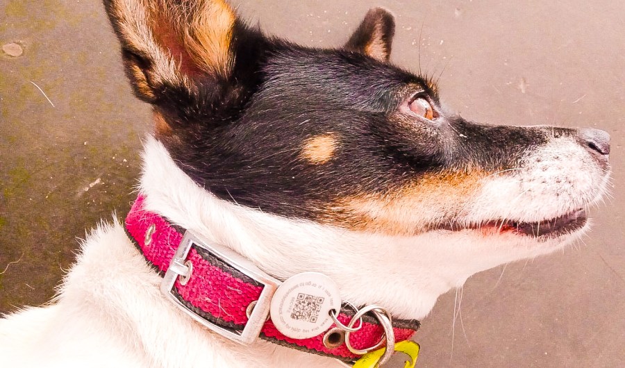 That’s Chess, the mixed-breed multi-colored small- with- a -long- torso and a cat-and-Lancashire-Heeler-look aspin — with the stare. (Cotton is easier to read)