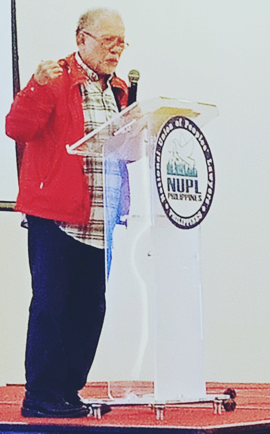 #atm 10:30am #OOTD former Sen. Rene Saguisag San-Beda-Harvard-Red jacket (#UPFight says Justice Leonen greeting him) cool plaid polo shirt, black slacks, black leather shoes