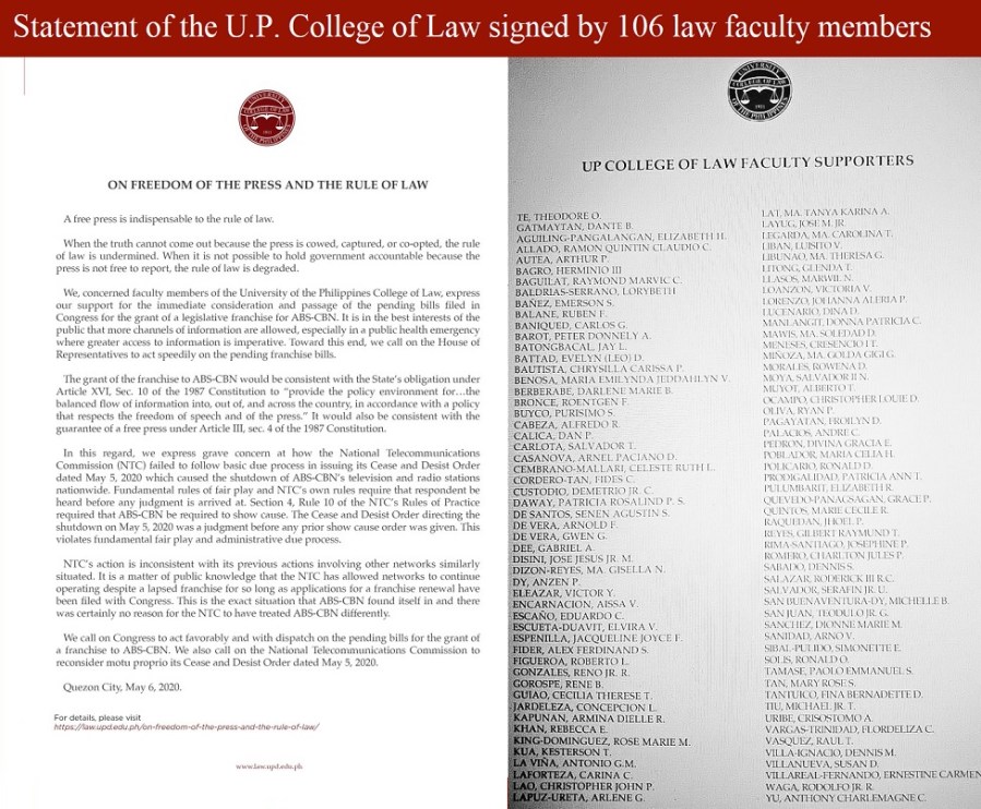 “NTC failed to follow basic due process.” -Statement of the U.P. College of Law signed by 106 U.P. Law faculty members