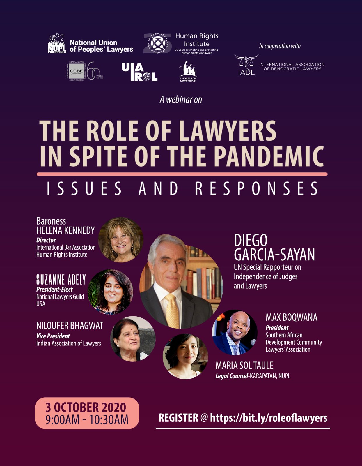 from the United Nations and from Europe, U.S., Latin America, S. Africa, and Asia led by the National Union of Peoples Lawyers presents on Oct. 3, 9am…