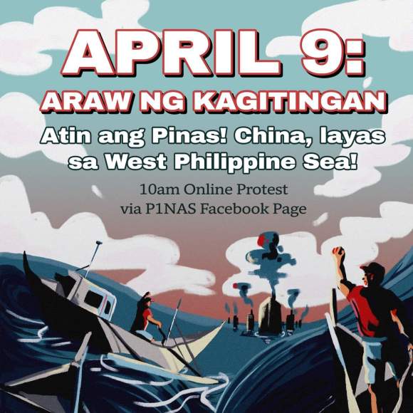 The pubmat is from P1nas (with a numeral 1 instead of i), which is spearheading a multimedia protest against the illegal incursions by China on the West Philippine Sea today April 9 Day of Valor in the Philippines