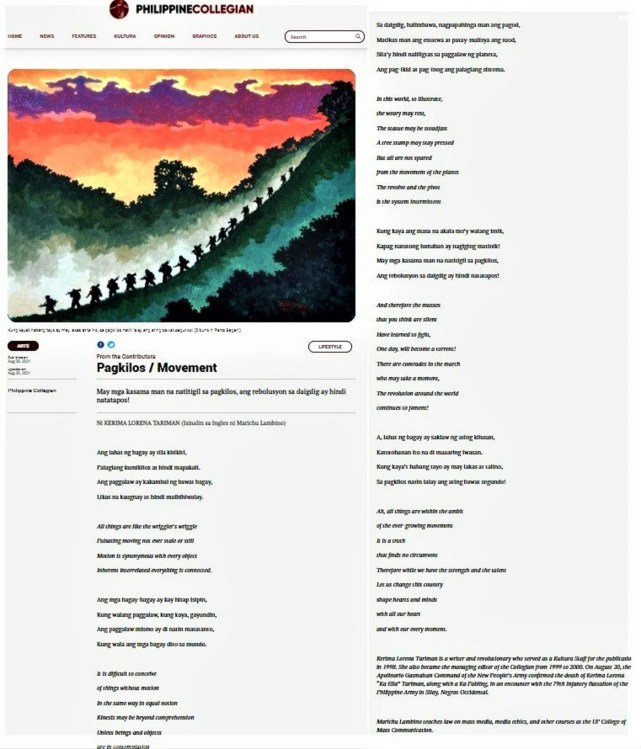 Screenshot, Cultural Page, the Philippine Collegian, University of the Philippines Diliman, August 30, 2021
