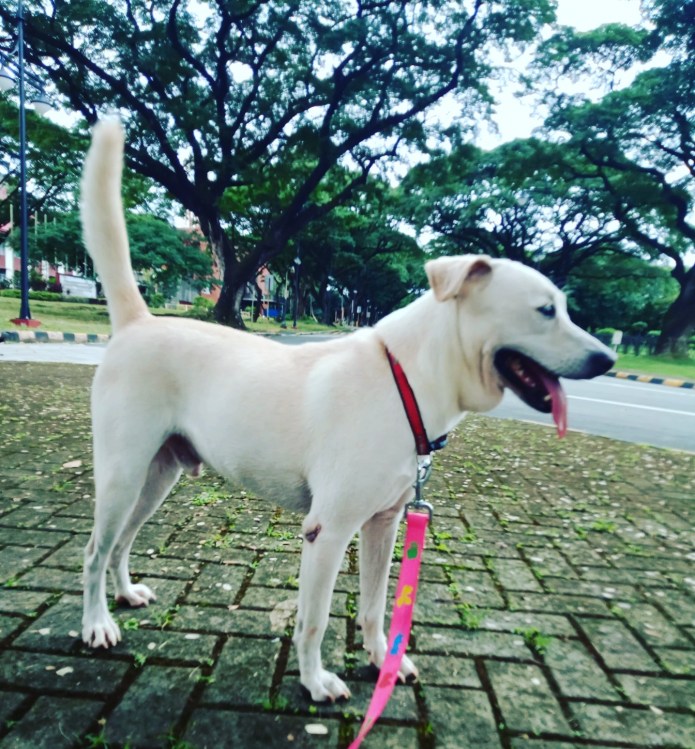 an hour ago, shot at 1:50pm : UP Sagip (rescue) dog Cotton / Kotton scoping the perimeter …
