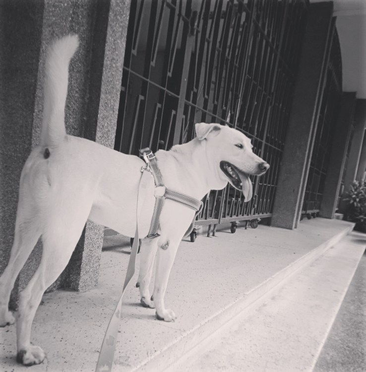 48hrs ago: UPD Sagip Dog (Rescue Dog) Cotton/ Kotton smiling and watching academic oval runners🏃 while standing on a fave spot at the former canteen of the UP College of Music