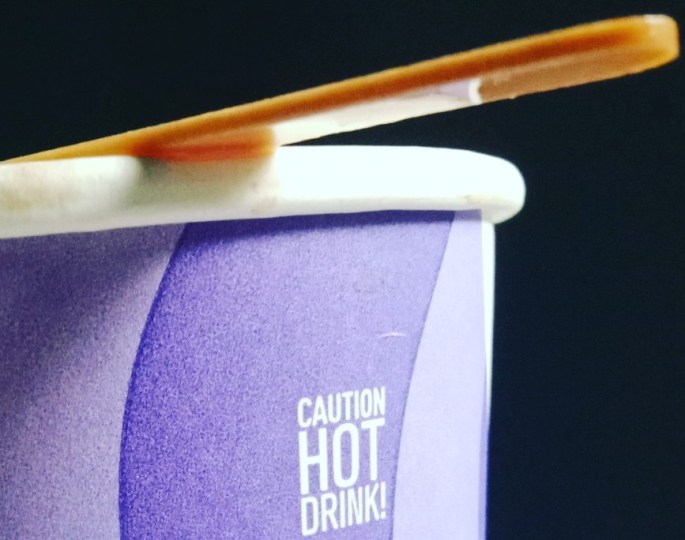 at the moment 3:30pm biodegradable stirrer on a biodegradable papercup of hot coffee, and fries🍟 , fastfood giant