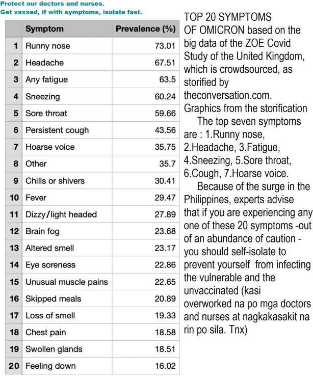 Protect our doctors and nurses (graphics below: see symptoms of when to self-isolate to be on the safe side: any one of these: runny nose, headache, fatigue, sneezing, sore throat, cough, etc.) #Omicron #Covid19 #Covid19Ph #pandemic