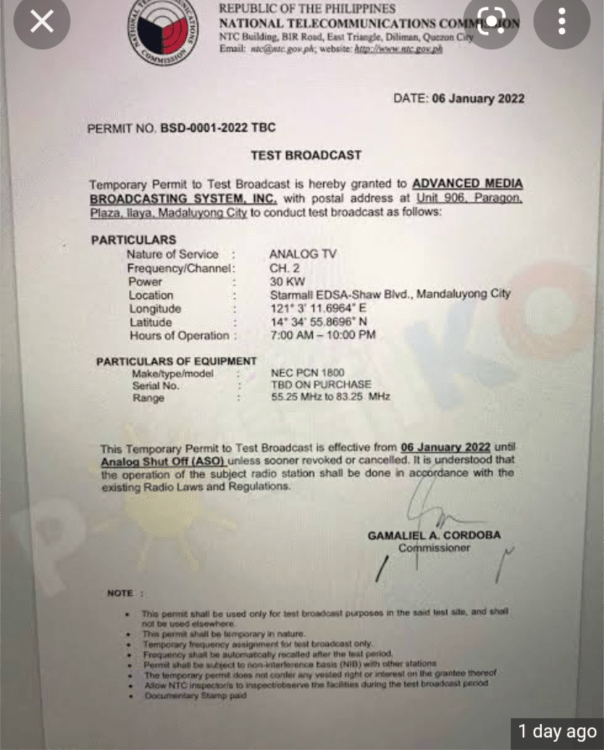 And the application granted 16 years ago for a term that has passed, is for DIGITAL TV. The grant 16 years after was for DIGITAL TV. It does not include any analog TV.