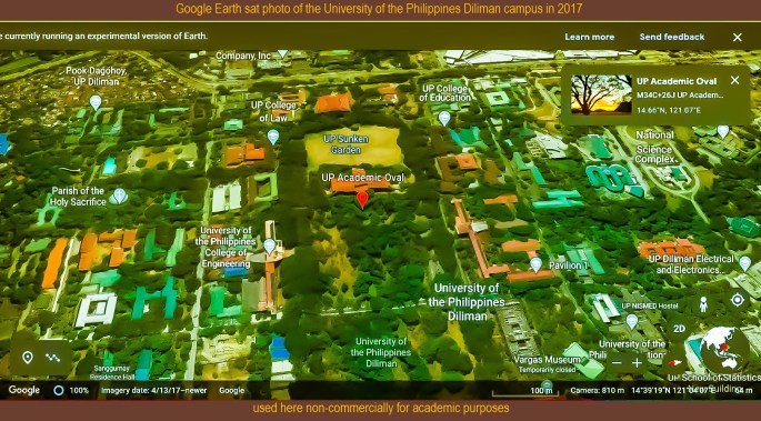 Google Earth sat photo of the #UniversityofthePhilippines #UPDiliman campus academic oval in 2017
