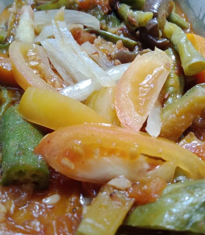 at the moment 10:37am #Vegan #Vegetarian #Meatless #Plants #veggies #PlantBased #Green #Pinakbet or vegetables stewed in tomatoes, onions and garlic Tagalog style Nueva-Ecija style. Early #Lunch or #Brunch or late #Breakfast #GoodMorning