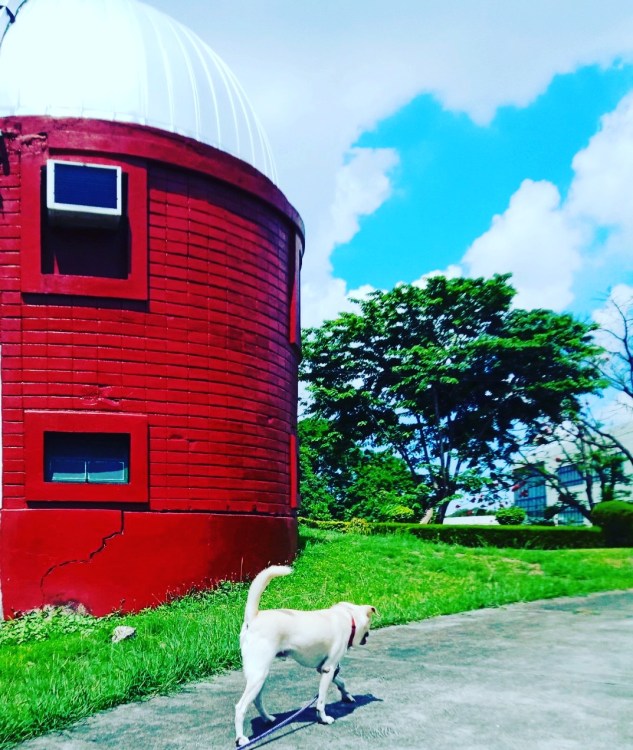 Photo shot 20 hours ago, University of the Philippines Diliman UPD Sagip K9 rescue dog 🐶 Kotton / Cotton sauntering for 15 seconds at the back of the old Observatory.