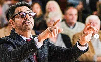 Ruby, accompanied by her supportive music teacher in high school (played by Eugenio Derbez) ,