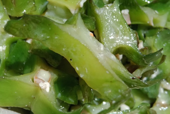 At the moment 11:47am Lunch: Gising-gising, literally “wakey-wake-up” : “Cigarillas” vegetables or winged beans sauteed in chilis, spices, and a little coconut milk
