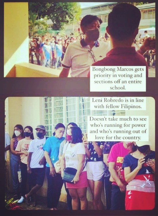 Requesting news reporters to confirm this: Marcos Jr sections off an entire schoolhouse so he could cut the line to vote (which constitutes barring / blocking voters from voting until he could get inside his precinct) (crowdsourced photo with graphics)