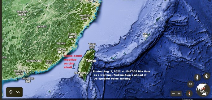 (see embedded sat map below — the light blue strait between Taipei and the mainland)