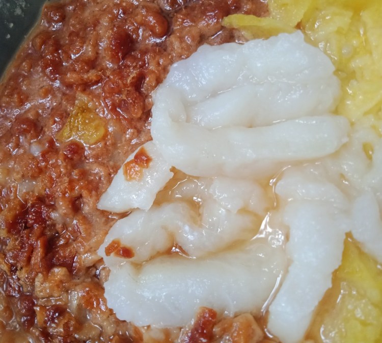 at the moment 8am Garlic and fish congee without any pork lard (most congee have some invisible pork lard — check it with your taste buds) on a rainy morning #vegetarian , for a vegan option, replace fish with tofu