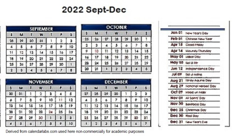 Class standing is available every month, a student may view it in blind (identities concealed by codes) at the end of each month. The UP Academic Calendar (as described) is embedded below, and a calendar Sept-Dec 2022 for the holidays (below the video)