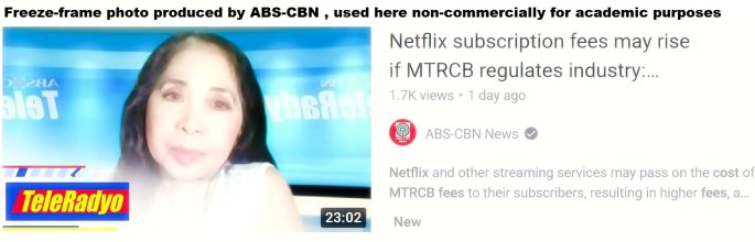 2 days ago: From ABS-CBN News: “Netflix subscription fees may rise if MTRCB regulates industry: media law expert” Video (The actual MTRCB Schedule of Review and Classification Fees embedded here)