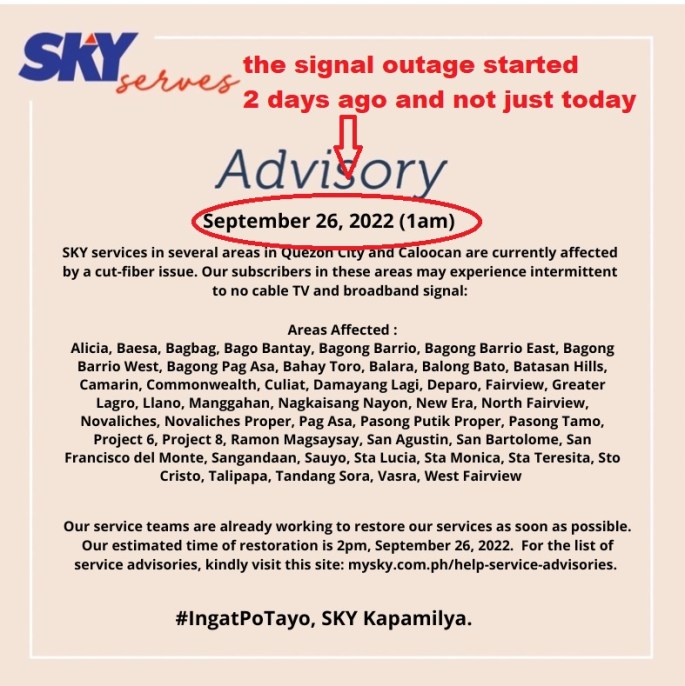 @SkyServes The signal outage started 2 days ago and not just today. on DM chat with the Sky agent a minute ago. It has been more than 48 hours now of no-signal. Pls restore the signal asap.