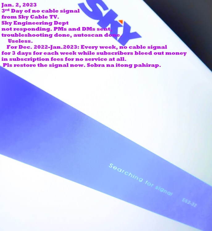 Dec. 2022-Jan.2023: Every week, no cable signal 3 days each week, subscribers bleed money dry in subscription fees.