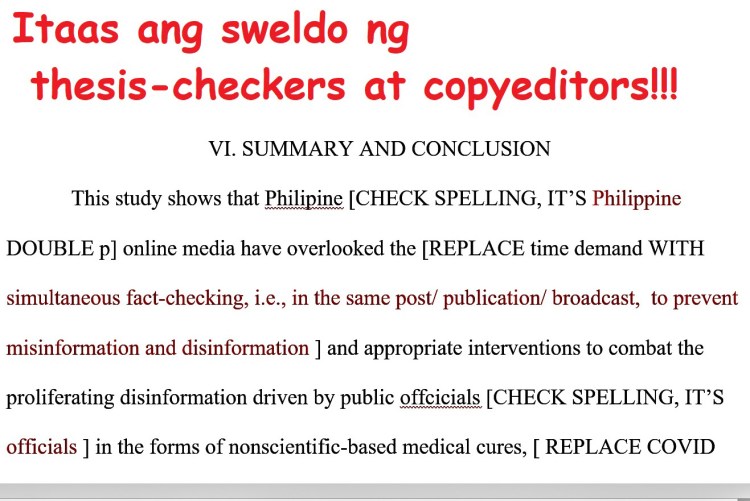 Itaas ang sweldo ng mga thesis-checkers at copyeditors!