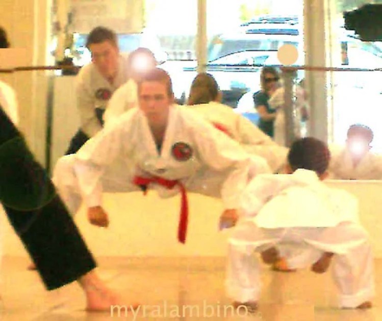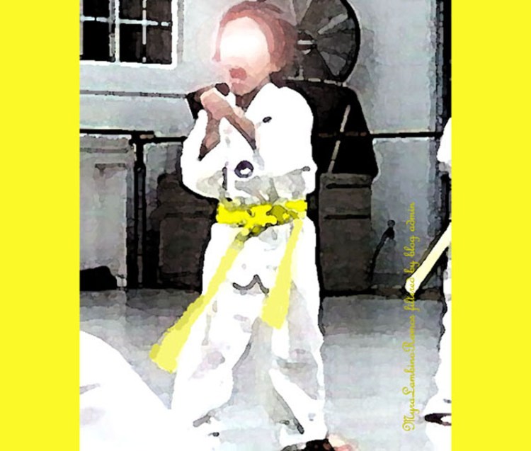 2011, second photo, J graduating with a yellow belt with honors awarded by his sensei