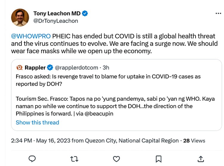 — Tony Leachon MD (@DrTonyLeachon) May 16, 2023