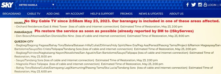 @SkyServes Cable TV down at 2:58 am today, our barangay is included in one of the districts listed by @SkyServes as affected by “service issues” as of 3am, with an assurance that service will be restored by 8am. Customers are paying for this service: It is down every other week. Pls improve your service po. Tnx.