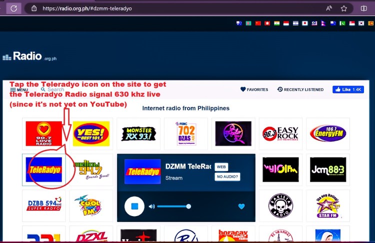 Get the actual live radio signal of 630 khz Radyo Sais Trenta Teleradyo #Teleradyo here, (since it’s not yet streaming on YouTube Live) get the radio signal here, the first time again after 3 years, open the radio app by tapping the link below, then clicking the play arrow on the Teleradyo icon: Tap the link below: