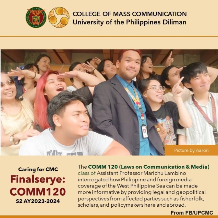 The Law on Media and Communication class members of the University of the Philippines Diliman UP College of Mass Communication during the public research presentation on the media coverage of the West Philippine Sea hostilities