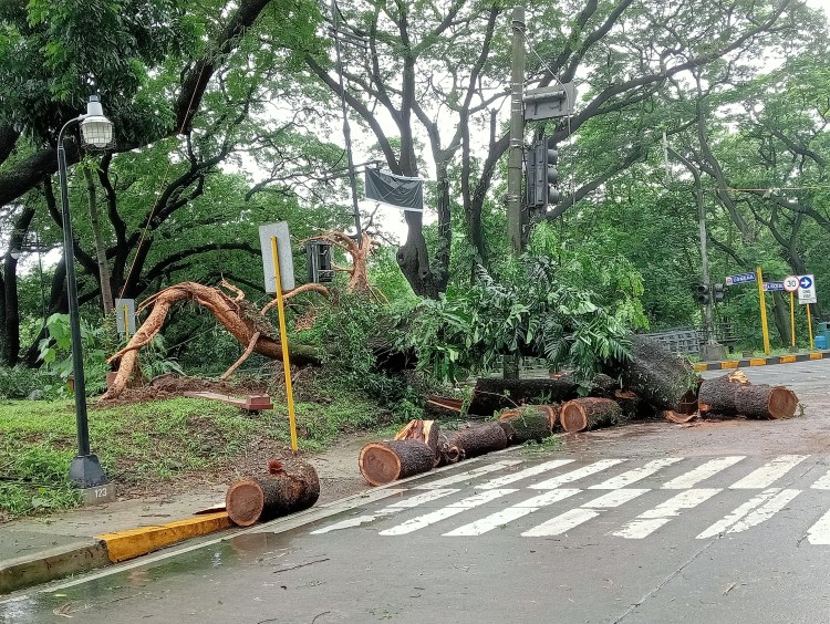 The corner giant acacia uprooted