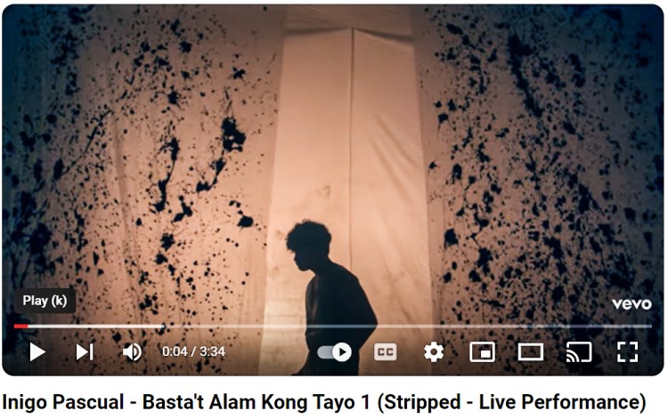 Iñigo Pascual, Basta’t Alam Kong Tayo 1 (as Long as I Know We’re One) (Stripped, Live Performance) Production House: Toothless Studio. Directed By: Jonathan Tal Placido. Co-Director: Tristan Ortega. Assistant Director: Daniel Chicombing. Production Manager: Kayla Embuscado. Production Assistant: Precious Tarun. DOP: Renz Gonzales. Gaffer: Arar Ancero. Cam Op: Jeb Agulto. Focus Puller: Manuel Ricafort. Production Designer: Lester Lambino, Nic Fabian