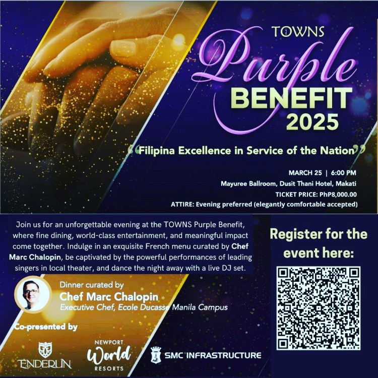 Fill your heart and your soul with world-class fine dining and entertainment for a cause at Dusit Thani Hotel March 25 with the TOWNS members and awardees for a fundraiser: You’re invited!
