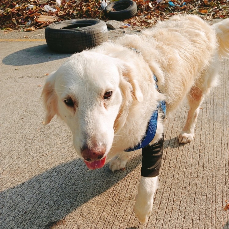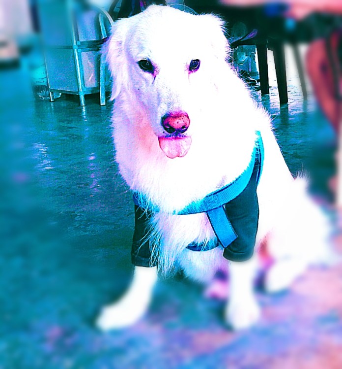 Ted, the English Creme Retriever, greets everyone on the streets in the morning