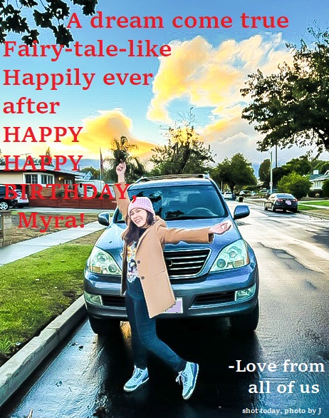 messagesA dream come true, Fairy-tale-like, Happily ever after, HAPPY HAPPY BIRTHDAY, Myra! A dream come true Fairy-tale-like, Happily ever after, HAPPY, HAPPY BIRTHDAY, Myra! – love from all of us click any social media icon below to share Share on Facebook (Opens in new window) Facebook Share on X (Opens in new window) X Share on Tumblr (Opens in new window) Tumblr Email a link to a friend (Opens in new window) Email Share on Pinterest (Opens in new window) Pinterest Print (Opens in new window) Print Share on Reddit (Opens in new window) Reddit Like Loading...