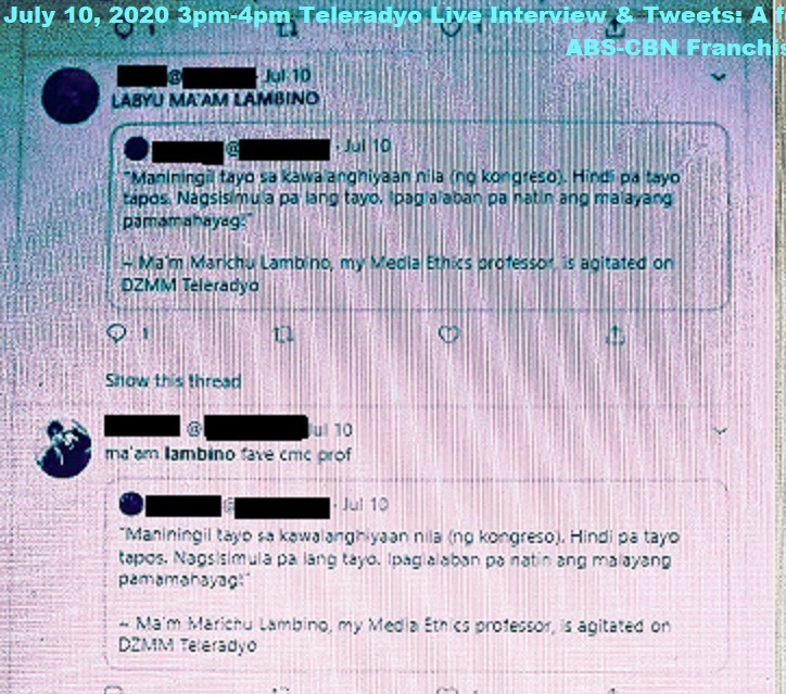 Live Interview that fateful day July 10, 3pm-4pm a few minutes after Congress killed the ABS-CBN franchise: