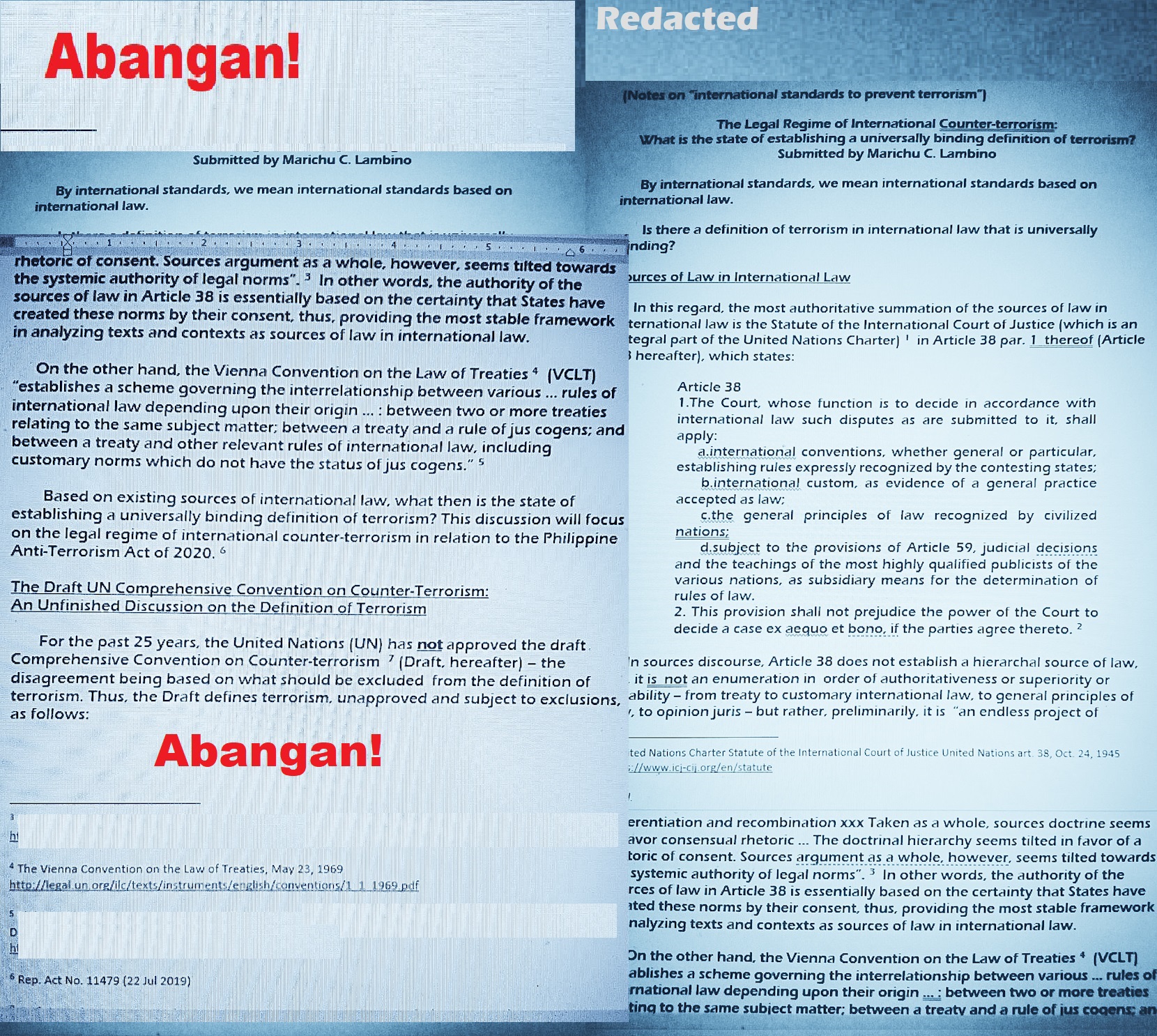 For the Supreme Court oral arguments today Feb. 2 at 2:30 pm on the Anti-Terror Act : Laymanizing the so-called “war on terror” transposed into the law on armed conflict to justify the aggressive engagement of suspects (and of everyone) based on assigned status as combatants and not based on any of their overt acts under criminal law