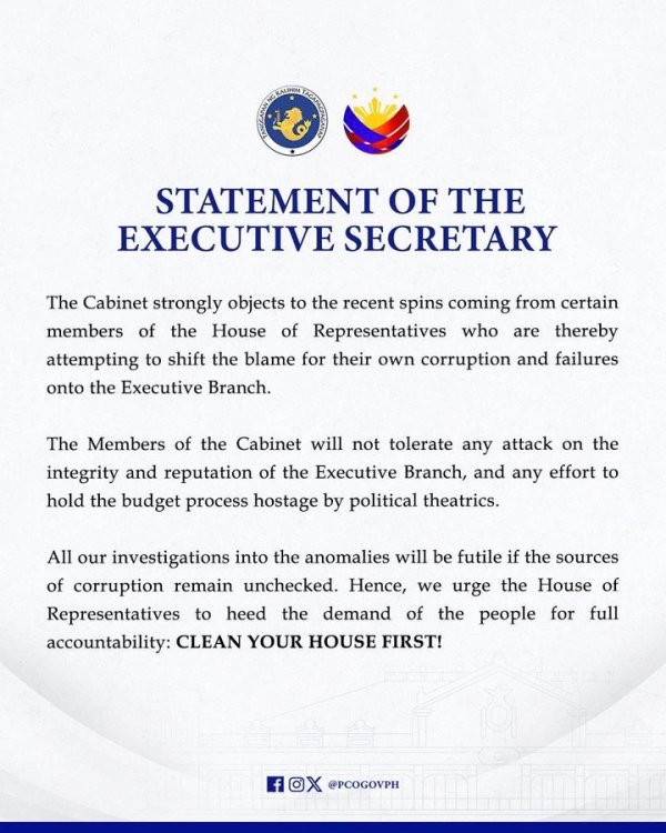 Typing on mobile phone: 3 hours ago: Palace lashes out at House for blaming Cabinet for massive corruption and for holding “hostage” the national budget by suggesting that the budget proposal be returned to the Department of Budget.