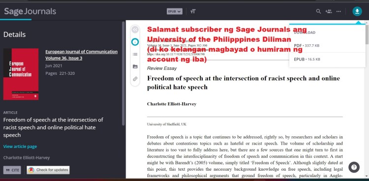 salamat subscriber ang University of the Philippines Diliman, no need to pay or to borrow someone else’s account