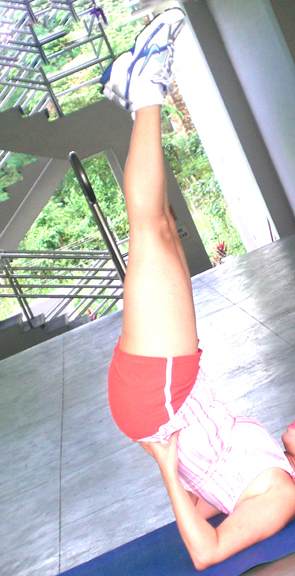 Salamba sarvangasana, shoulder stand, to compress the stomach hahaha