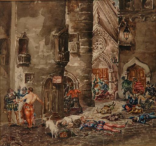 Francis Luis Mora. Medieval Street Battle 1888. ACA Galleries, est. 1932. Right-clicked from www.artnet.com searched thru www.artcyclopedia.com