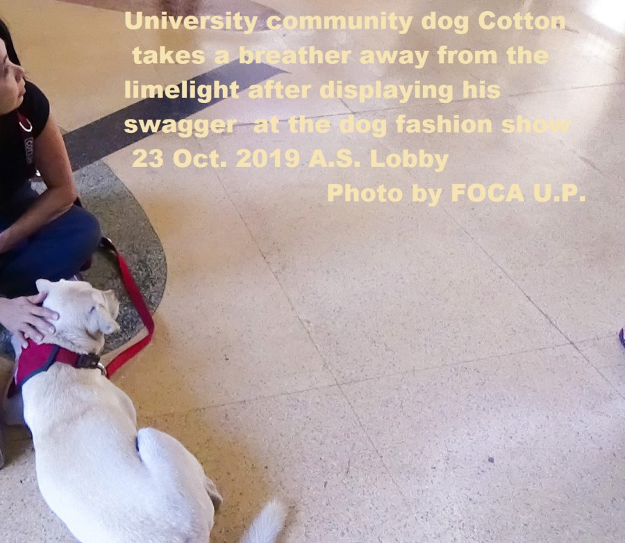 University of the Philippines community dog Cotton takes a breather away from the limelight after displaying his swagger