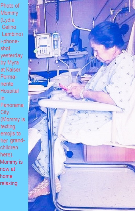 We thank immeasurably the heavens 🌈 for Mommy’s successful surgery ( Mommy is Lydia Celino Lambino ) . Deep thanks to Kaiser Permente Hospital Panorama City @KPPanoramaCity , to surgeon Dr. Ahmed Dehal, to U.S. health care plan administrators, to Myra, Teng, Jane, to all of Mommy’s grandchildren, and everyone who prayed for Mommy.